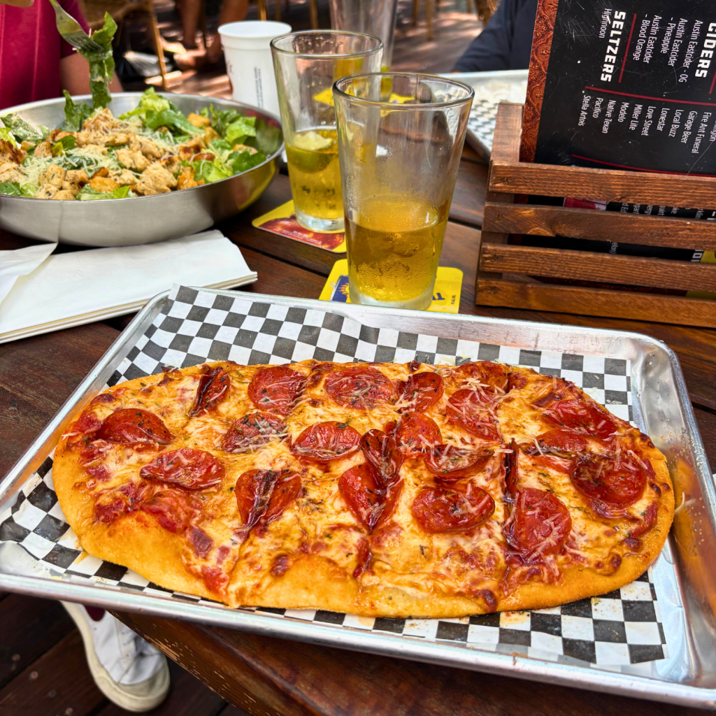 Pizza and beer are a simple joy. On Bar W’s patio, with fall creeping in, it’s unbeatable. The hot honey pepperoni flatbread is indulgent and borderline healthy because of the honey. Bonus: the chicken Caesar salad is its sexy skinny cousin.