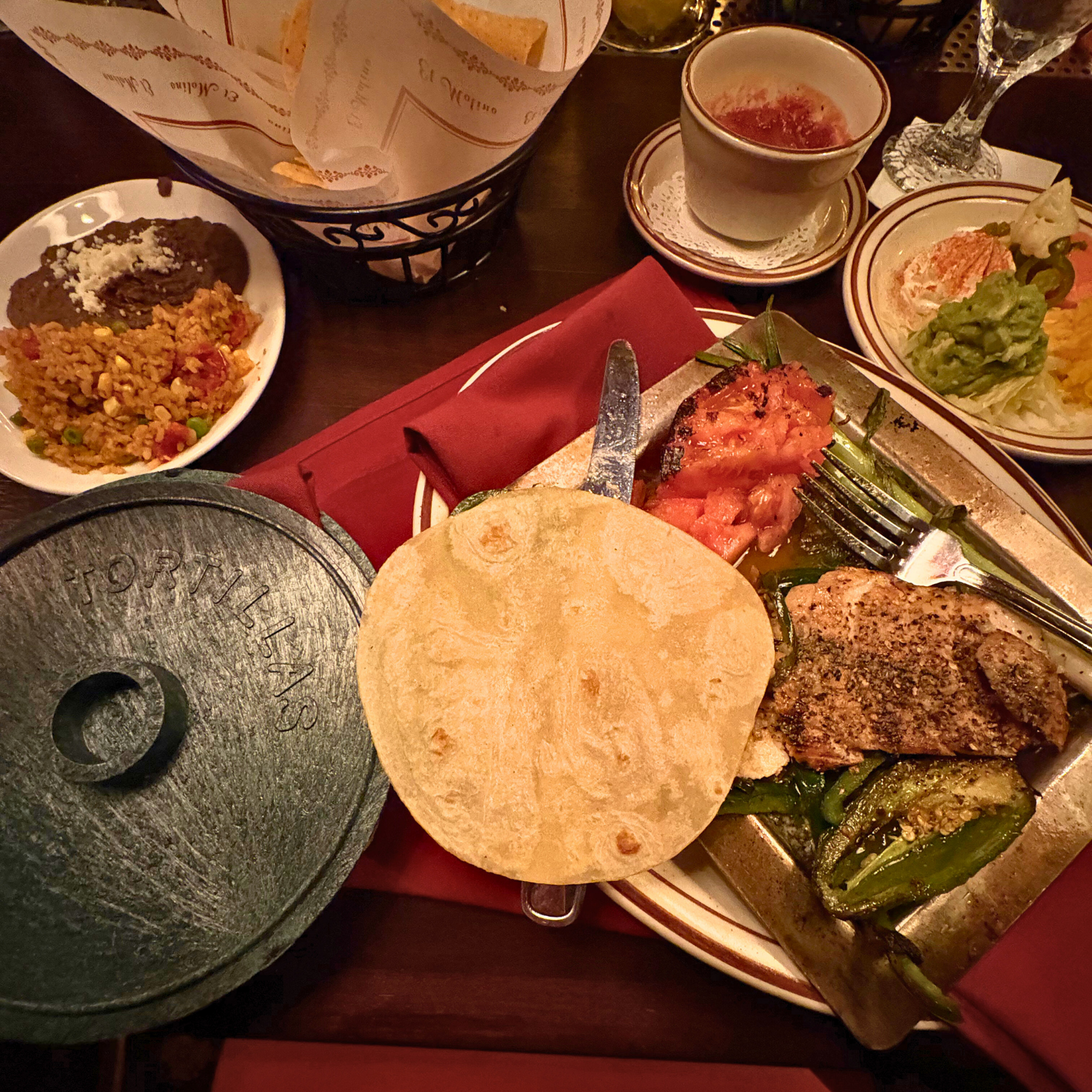 I ordered the chicken fajitas, a dish I’ve been using lately as my Tex-Mex litmus test at places like Las Palmas and Muchacho, both of which execute them beautifully. My server said they’re “known for their wood-fired fajitas.” Known for three months, I guess.