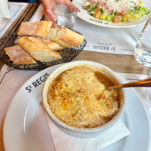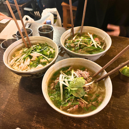 Croque madame is a staple, and this one was… fine. The broth in our pho was disappointing, and I felt similarly underwhelmed by my French onion soup—something my sister is, frankly, doing better at Bistecca.