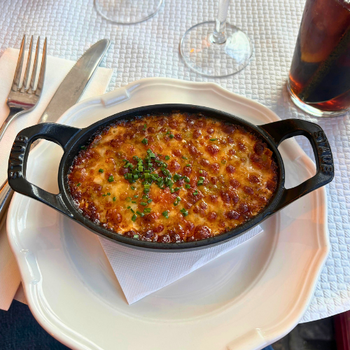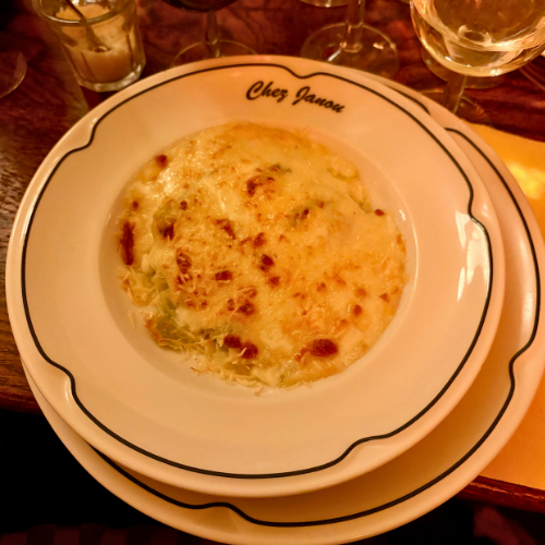 It’s hard for me to think about the ravioli au gratin at Le Flore en L’Île, mostly because I know I can’t have it here. Fingerprint-sized, delicate ravioli stuffed with something green, blanketed in cream sauce and topped with broiled cheese. Looking at them now feels like seeing an ex.